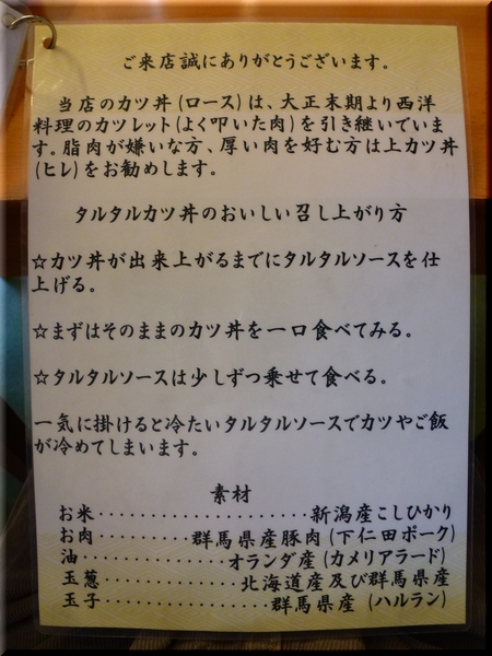 「すり鉢タルタルカツ丼」の商標登録を持つことで有名な老舗。