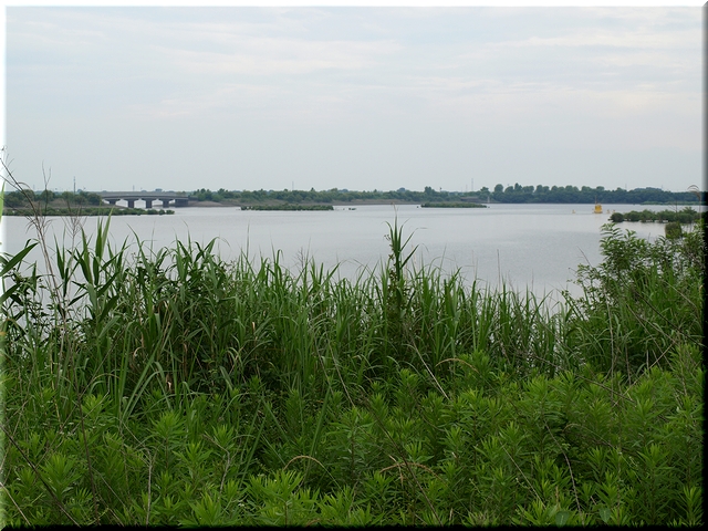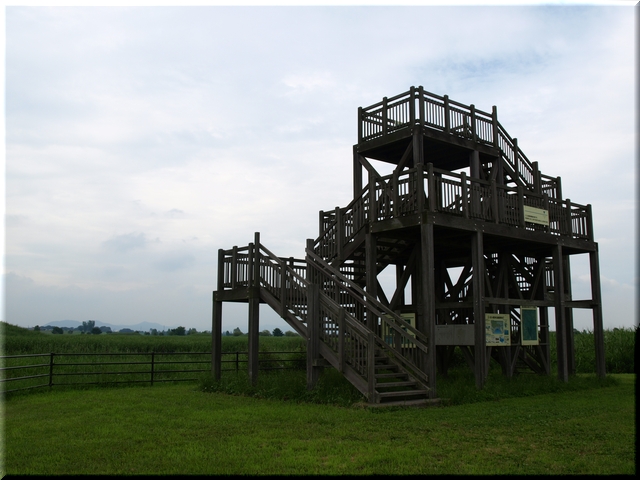 ・ 湖北東部に建つ展望台から谷中湖を望む