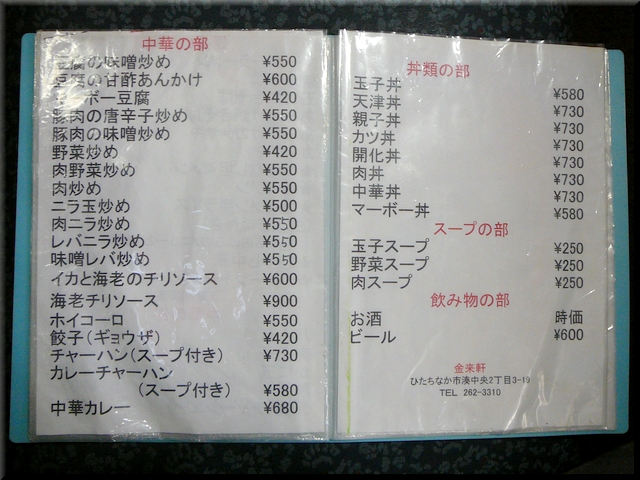 茨城県ひたちなか市湊中央「中華料理 金来軒(本店)」にて。