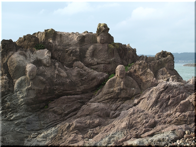 山形県飽海郡遊佐町「十六羅漢岩」にて。
