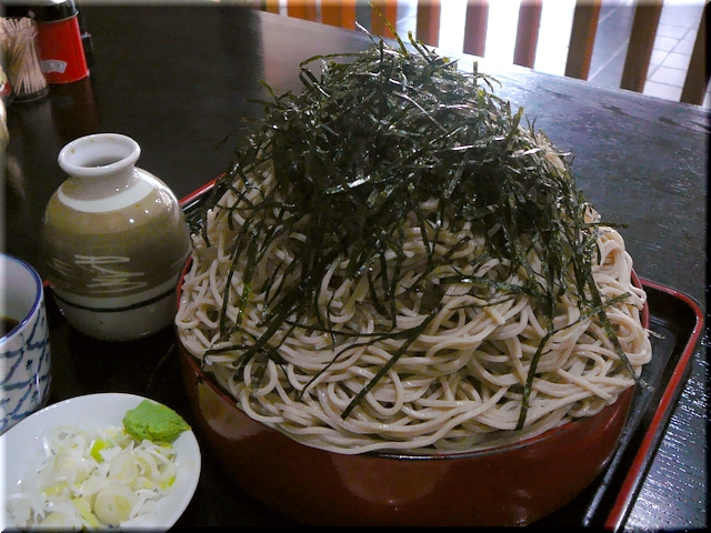 薬味が二皿置かれても不思議と思わない堂々たるそば山…。