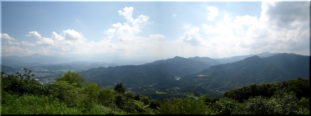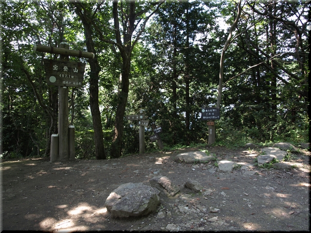 中腹から木陰が減り、ひ~こらひ~こら登ってようやく頂へ…。