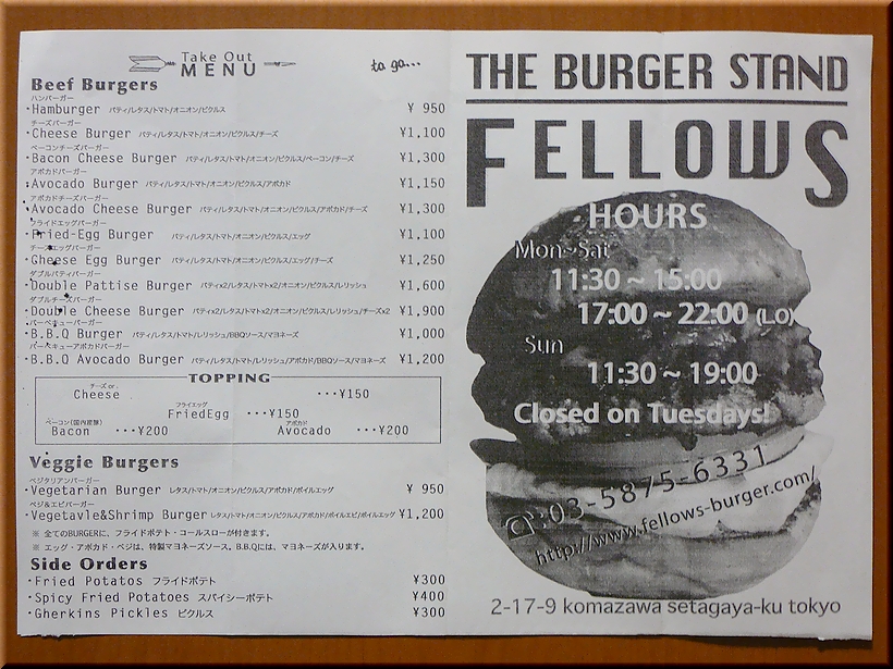 東京都世田谷区駒沢「FELLOWS THE BURGER STAND」にて。