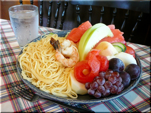 正しくは「野菜&フルーツ盛り合わせ・海老とパスタ添え」!?