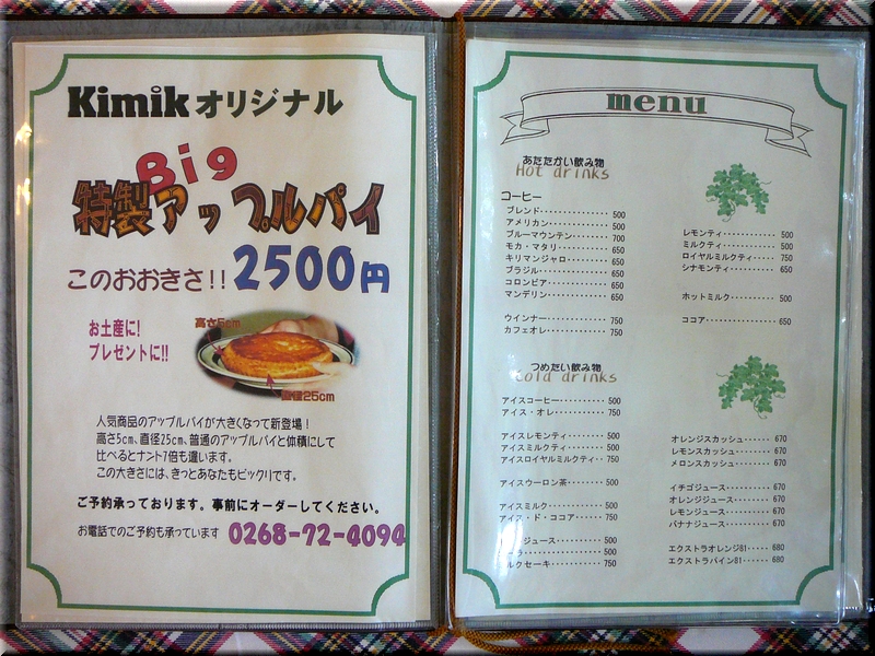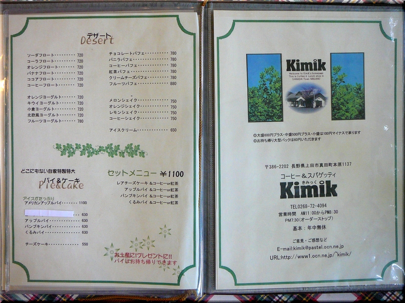長野県小県郡真田町「コーヒー&スパゲッティ Kimik」にて。