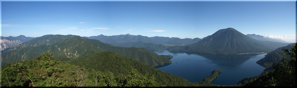・ 男体山とその雄姿を映す中禅寺湖を眺める