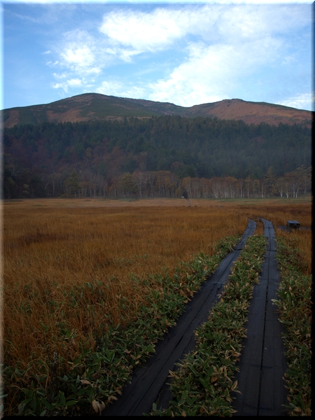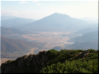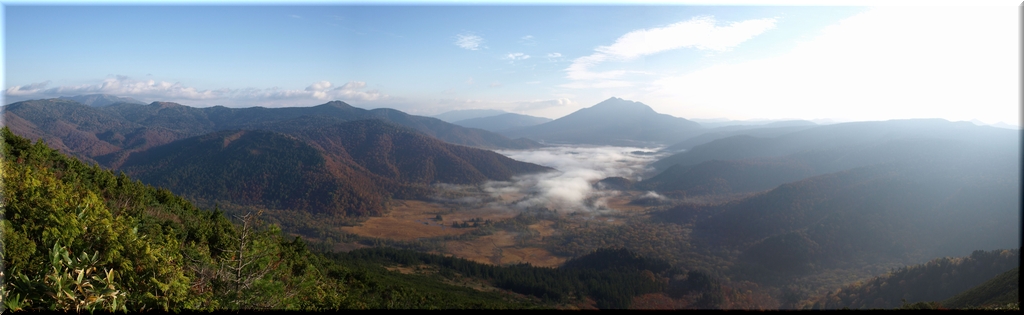 ・ 登山道中腹から燧ケ岳と雲海に沈む尾瀬ヶ原と眺める