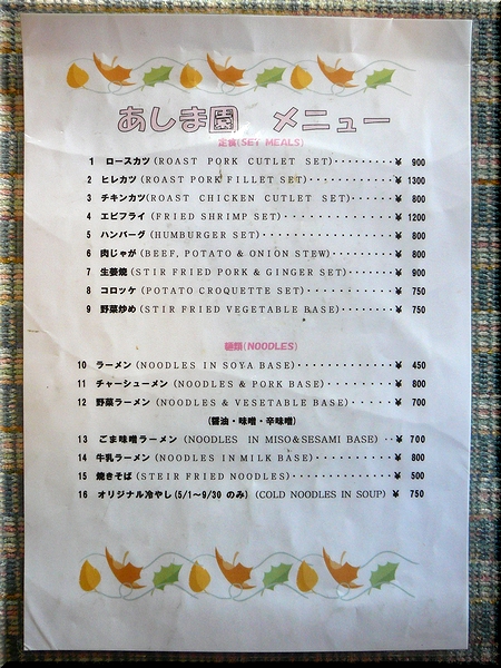 群馬県利根郡みなかみ町「喫茶 定食 あしま園」にて。