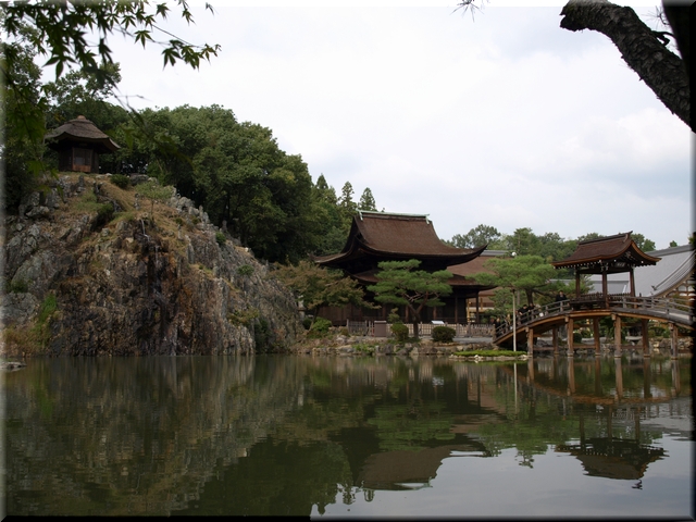 ・ 臥龍池に掛かる無際橋と対岸に建つ観音堂を眺める