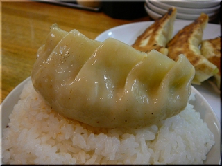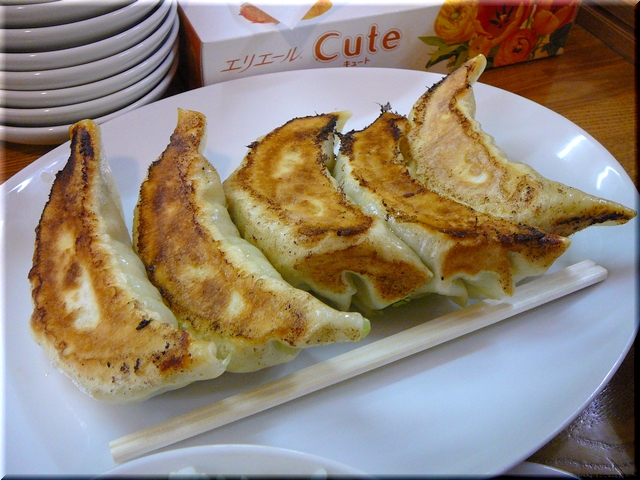 きっと想定した主用途でないだろう大皿に群れる5つの餃子。。