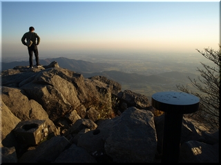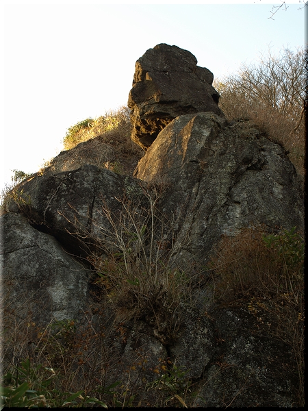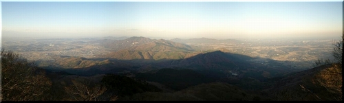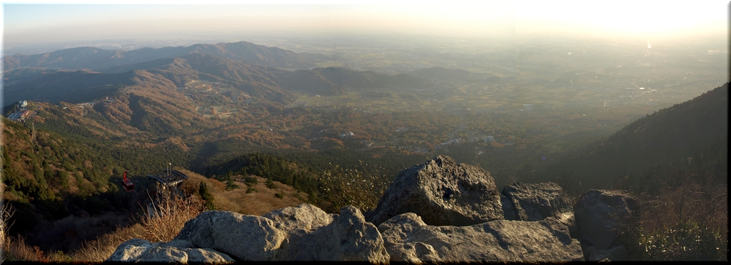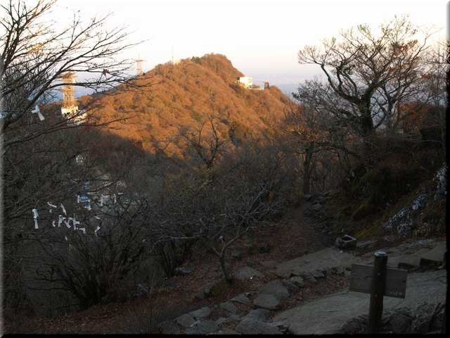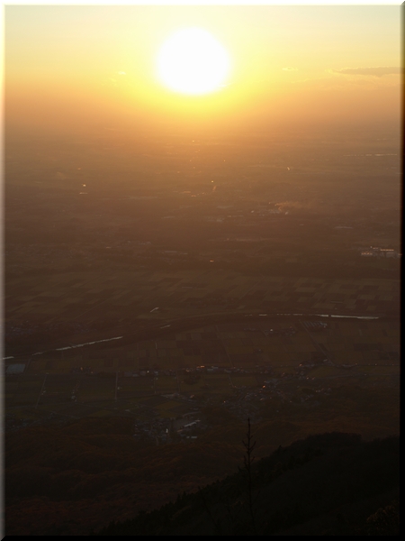 ・ 女体山山頂から夕日をいっぱいに浴びる男体山を望む