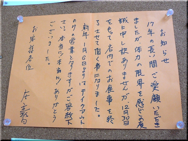麻釉に続いて、知る人ぞ知る千葉の雄は年内いっぱいで店内