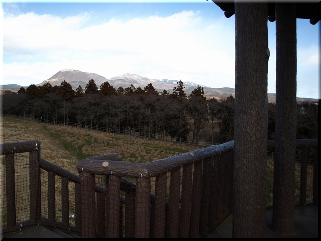 ・ 赤城山をバックに力強く回る風車を見上げる