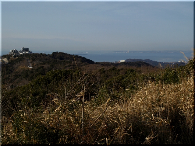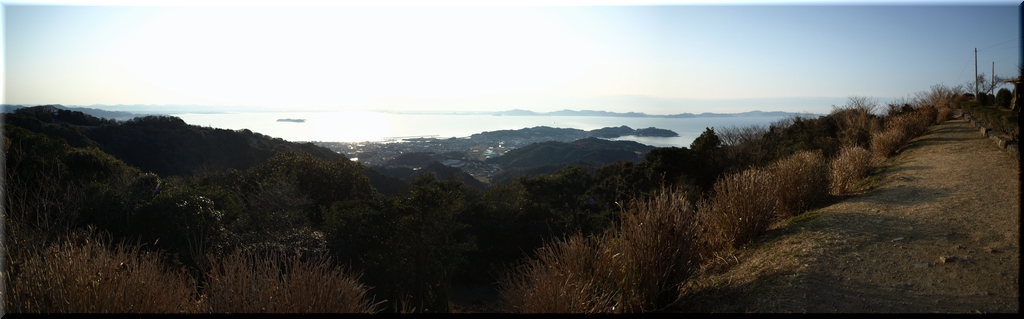 ・ こい鯉広場から三河湾に突き出した西浦半島を眺める