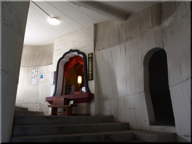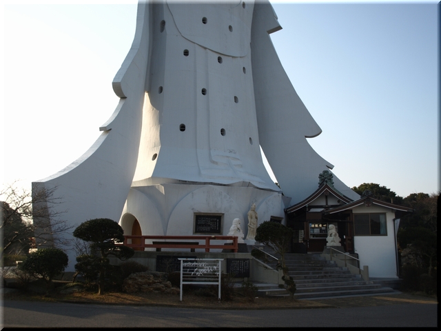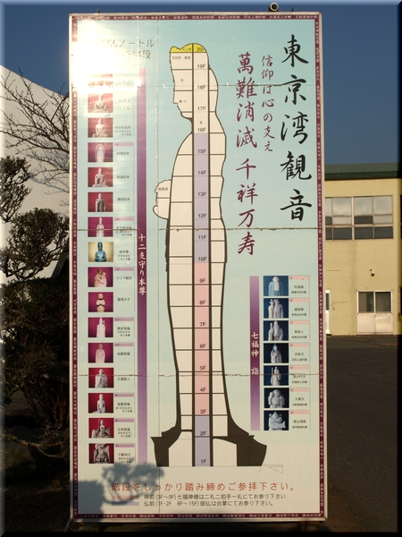 ・ 優しい顔で東京湾を見つめる観音像を見上げる