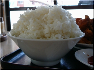 ご飯もしっかり漫画盛りだけど、おかずが余らないよう慎重に。