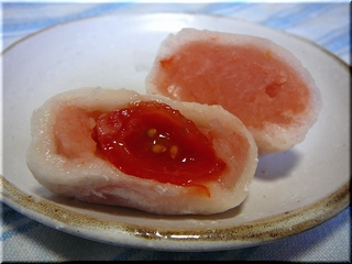 大福は固体、まんじゅうは餡と一体。えぇ、「トマト味」です( ̄ー