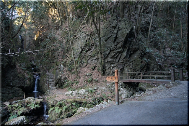 ・ 夫婦橋を渡って振り返り改めて男滝と女滝を楽しむ