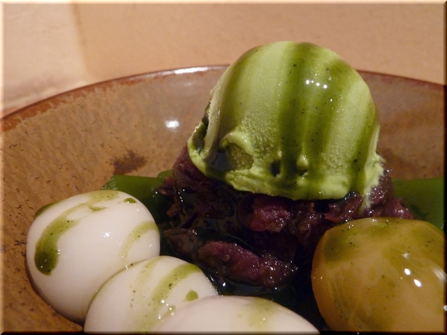 苦みのある抹茶蜜と冷たくて甘い抹茶アイスが全体を仕立て、