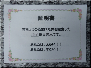ヒレ6枚を無事にお腹に収め、「はるまげ丼」挑戦権ゲットです。