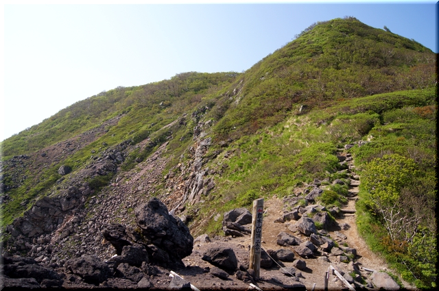 ・ 左 : 9合目分岐(1470m) … 正面に鳥海山(1502m)。