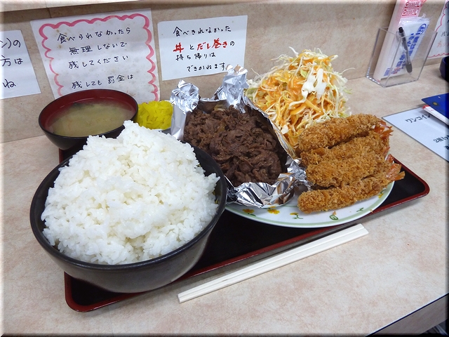 (エビフライ&焼肉/ご飯・おかず大盛) ¥1450