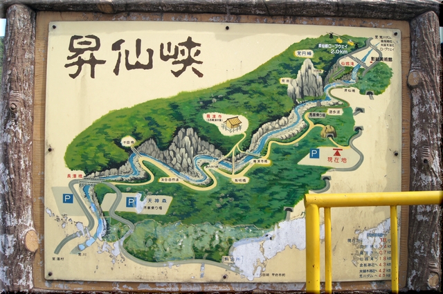・ 県営駐車場(無料)にある 周辺案内図 | 上流の景色