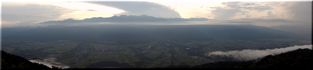 ・ 西方向のパノラマ … 中央アルプス&伊那平全景。