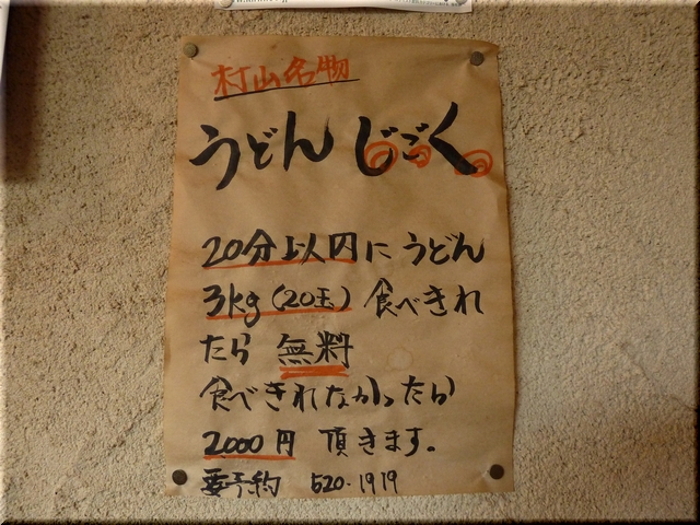 1玉=150g。チャレンジ「うどんじごく」は20玉=3000g。