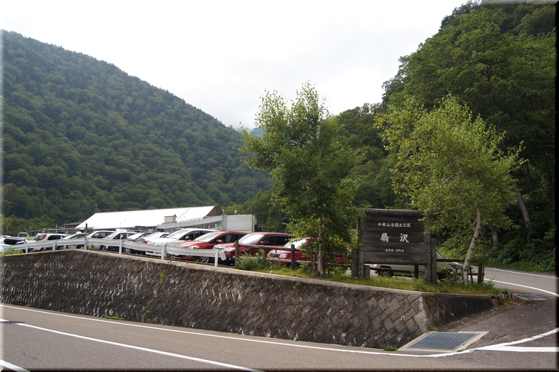 長野県側起点。手前に無料駐車場有り。