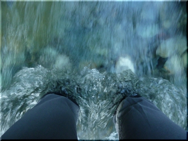 ウェーダーを着用しない限り、濡れないで行くことは諦めたほうがいいかと。