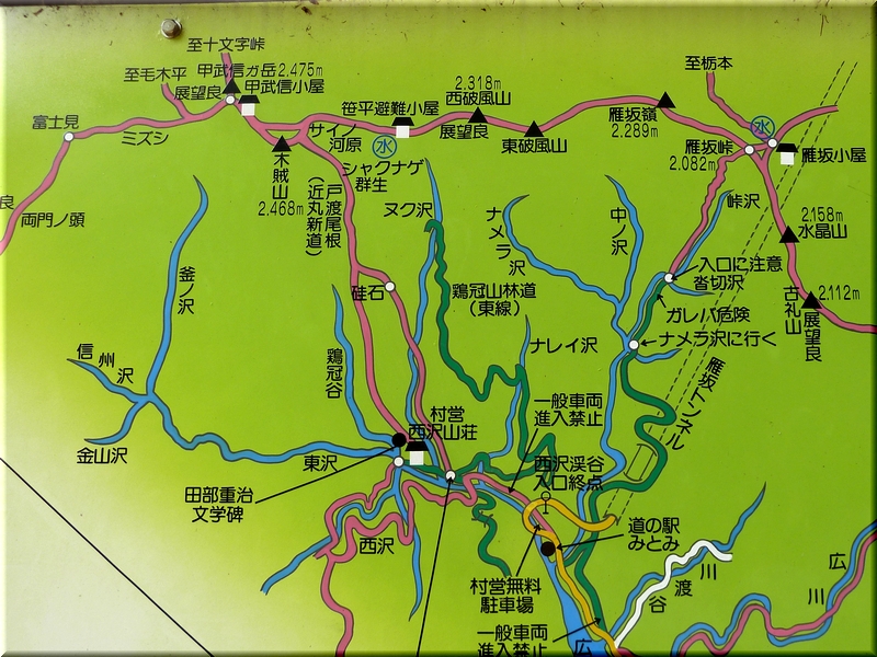 「徳ちゃん新道」から「西沢山荘」、そして道の駅みとみへ。