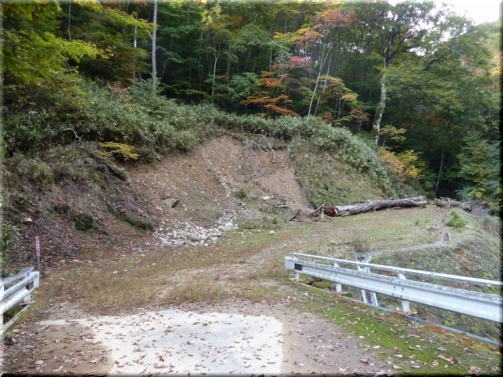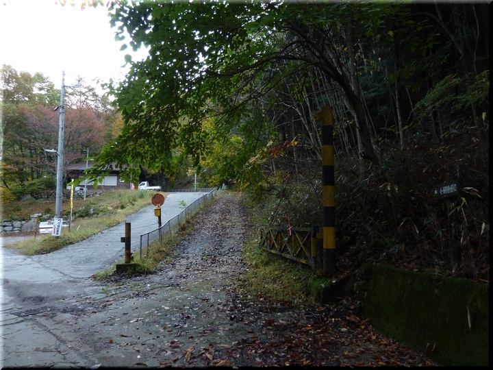 舗装路(林道)終点となる「沓切沢橋」の先で山中へ。