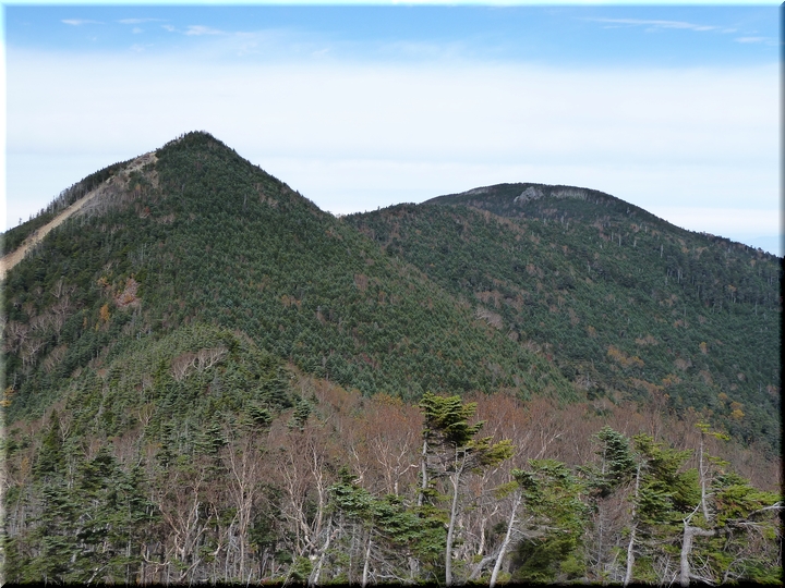 ・ 木賊山との鞍部近くからとんがりな山容を眺める
