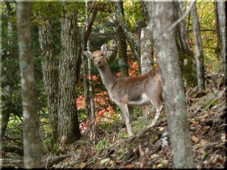 途中、何度か沢を渡ったり、鹿さんに驚かされたり、