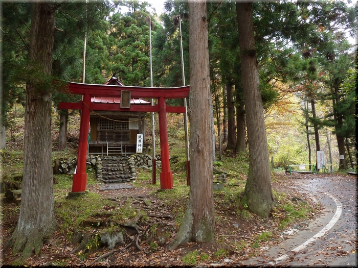 県道63号線を藤原湖近くで折れ、「武尊神社」へ。