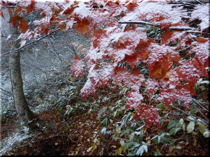 裏見の滝コースに入り、手小屋沢避難小屋経由で沖武尊、そこから尾根を