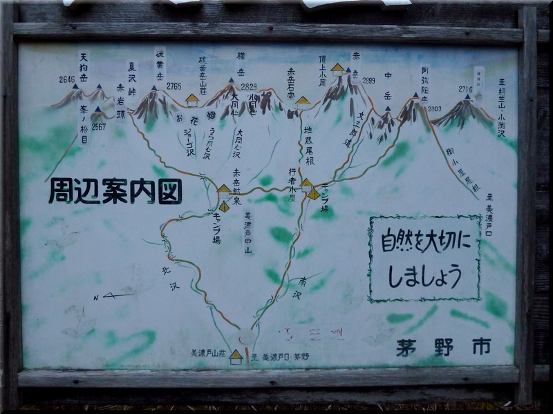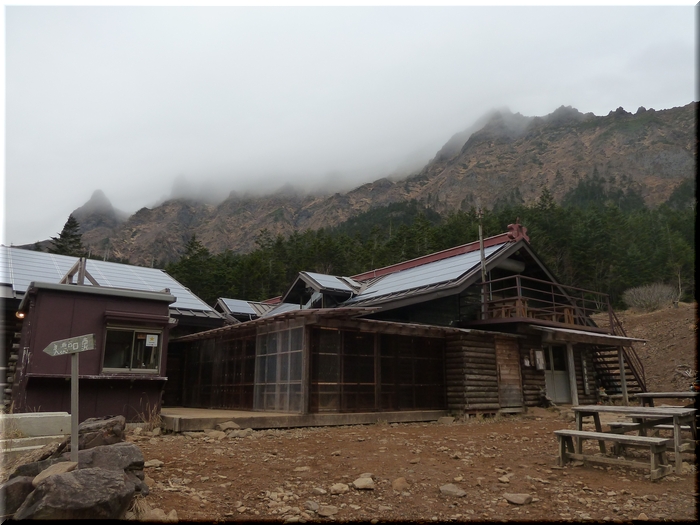美濃戸口より数キロの悪路を進み、「赤岳山荘」で下車。