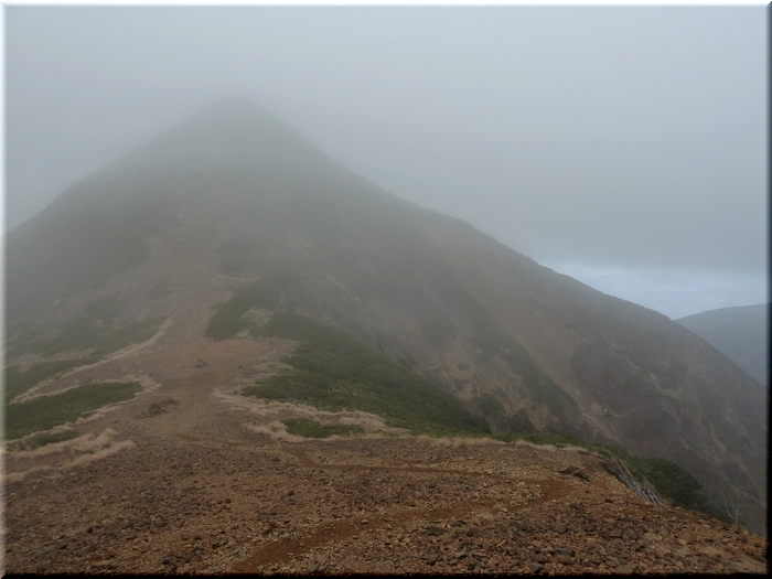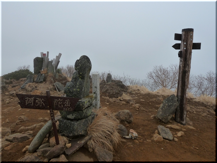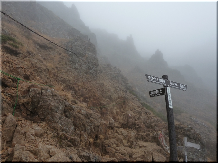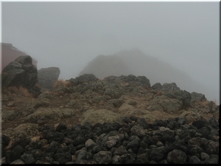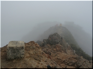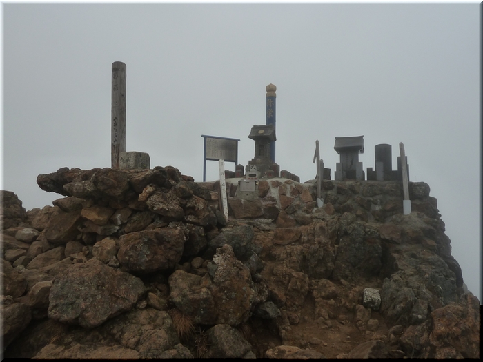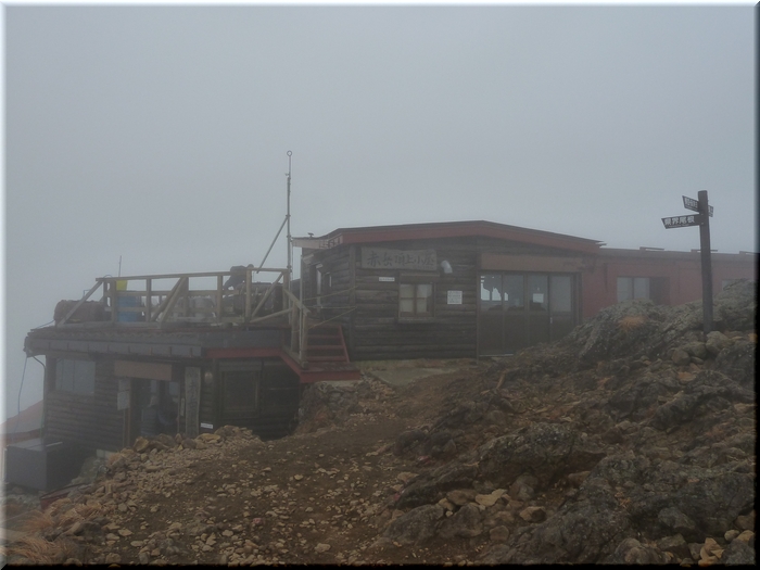 ・ 念願だった赤岳山頂を流れゆく雲の中で眺める