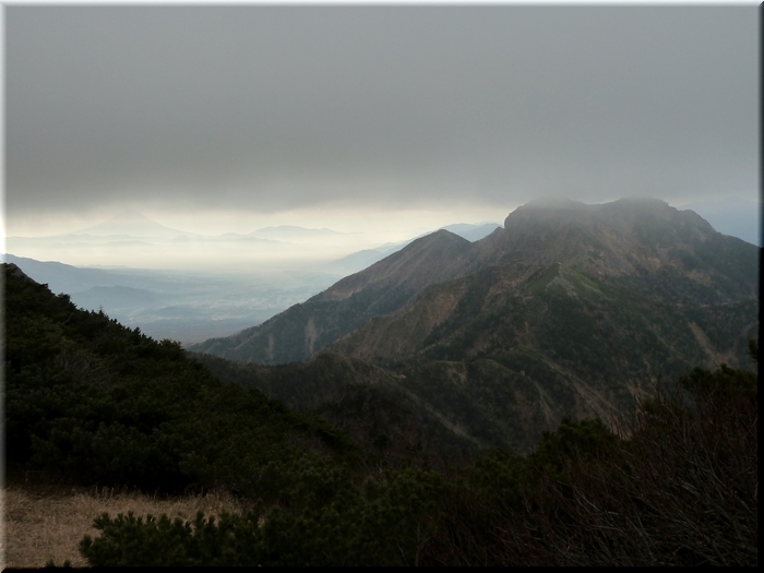 これが今回通る稜線。多分、この時が一番はっきり見えた…。