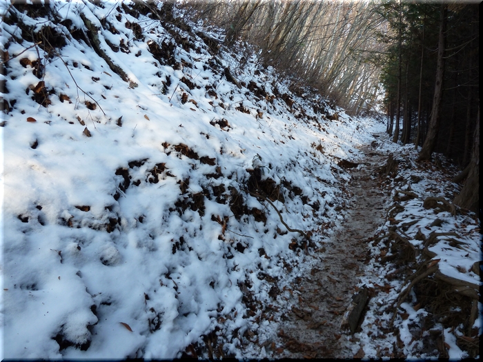 続く林道の途中にあり、そこから300mほどで登山口に到着。
