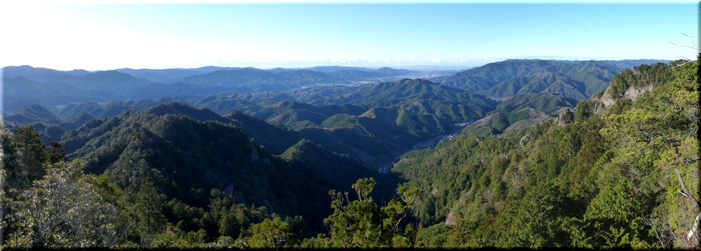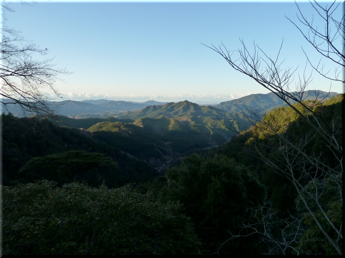 本堂に背を向ければ歩いてきた山あいが眼下に望める。