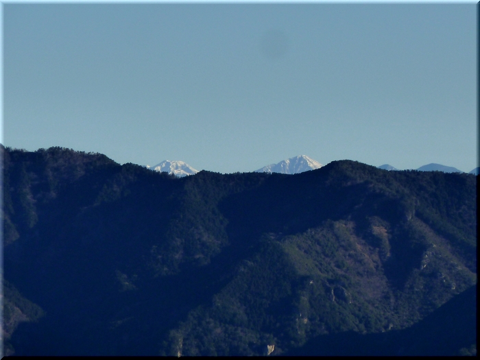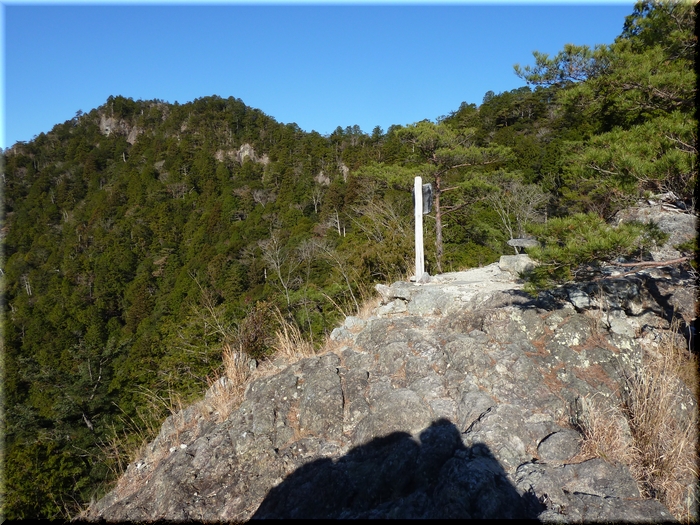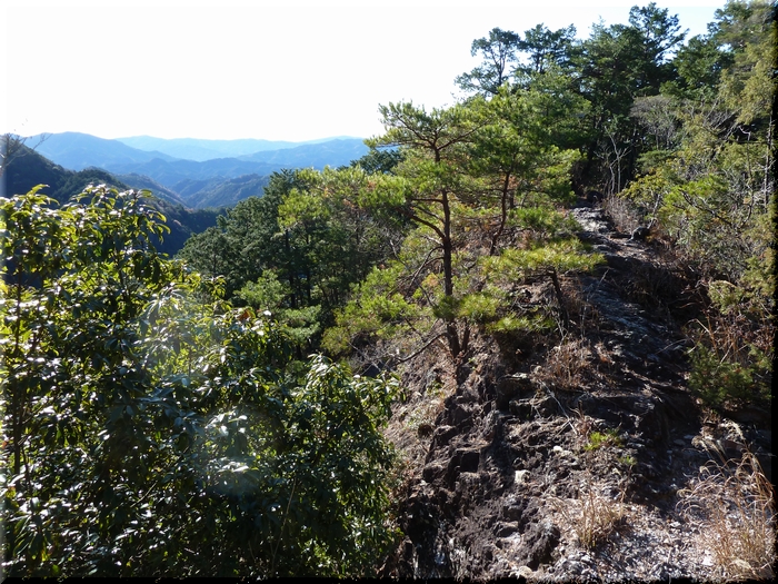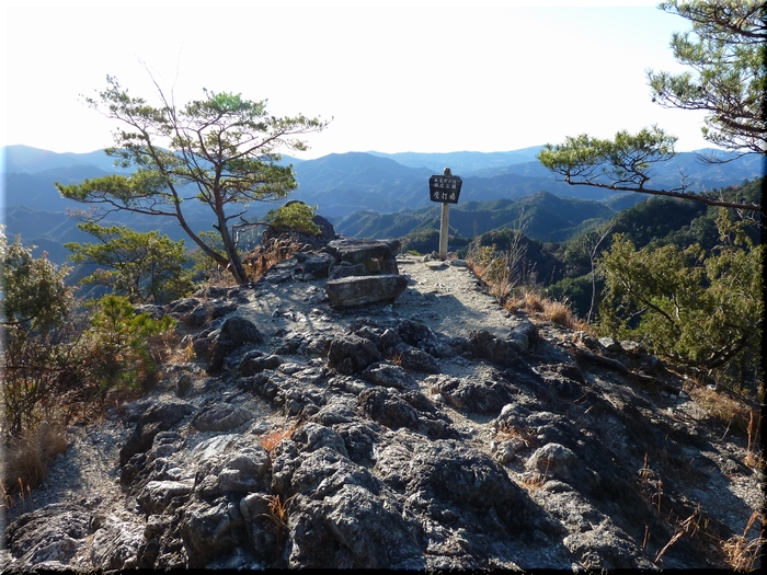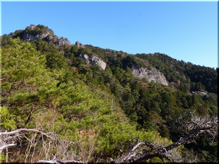 振り返って、歩いた尾根と「天狗岩」を見て、