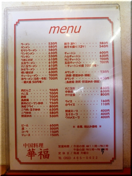 静岡県浜松市中区曳馬「中国料理 華福」にて。