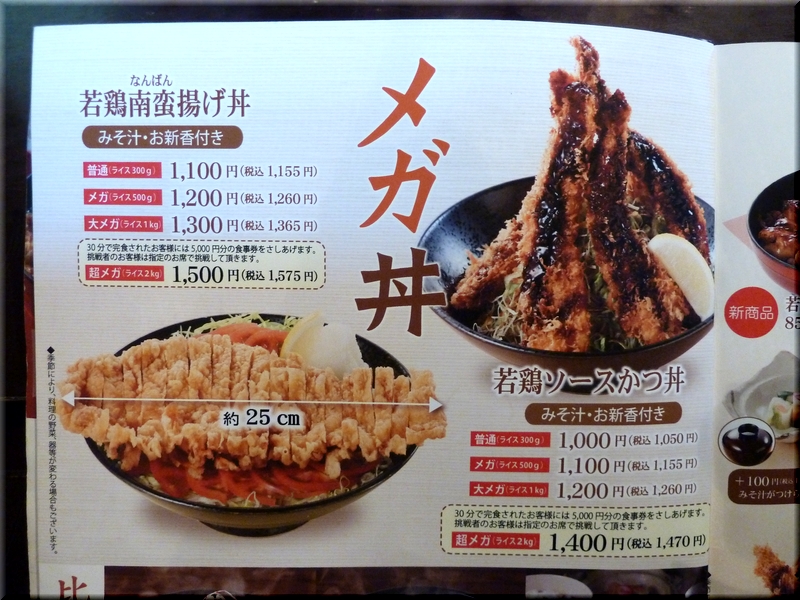 メガ丼は2種類でサイズは4段階。
