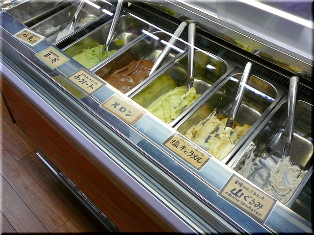 ・ そばジェラート(ダブル・塩キャラメル&抹茶) ¥400