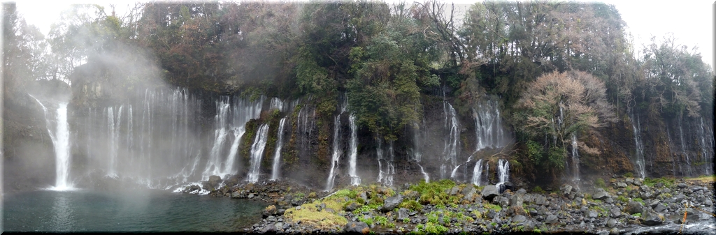 静岡県富士宮市上井出にかかる、落差20m・幅200mの滝。