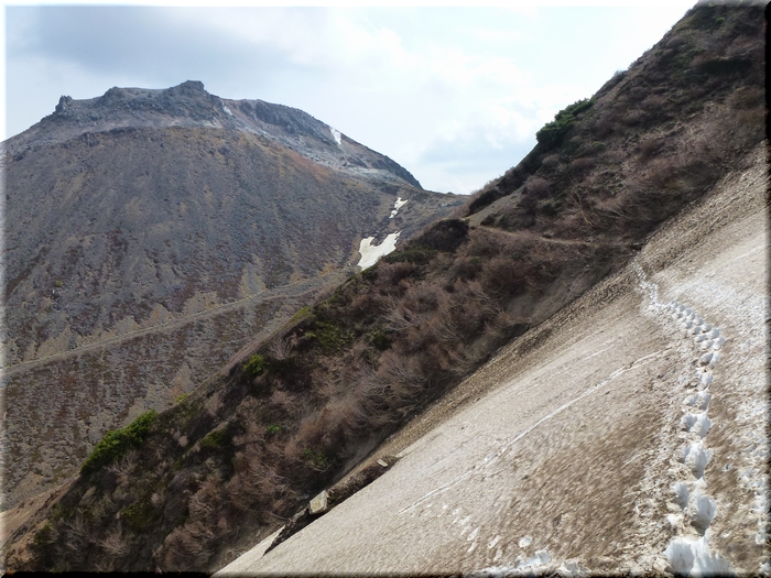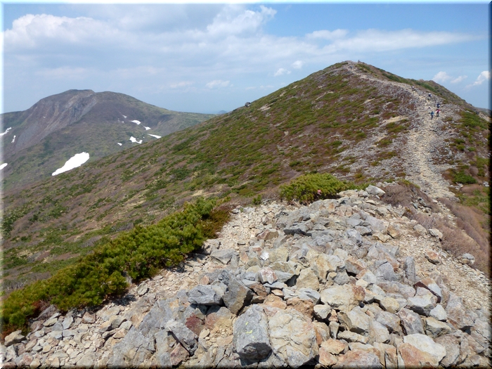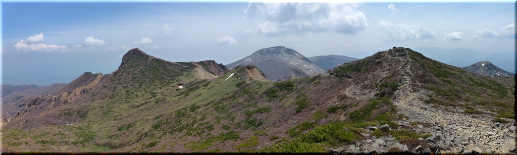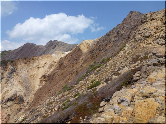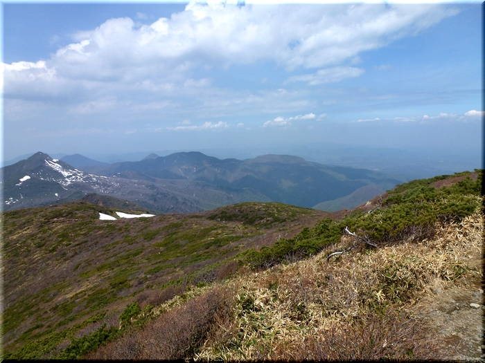 ・ 朝日岳に続く尾根からでっぷりとした茶臼岳を睨む