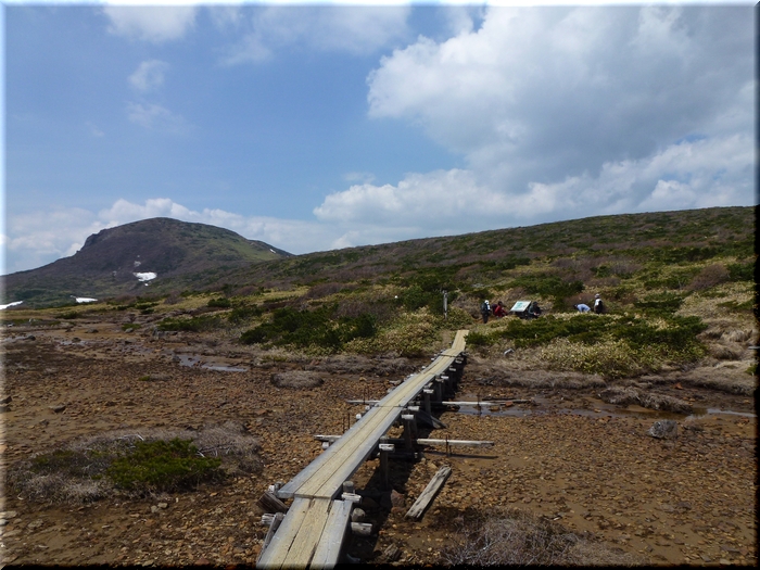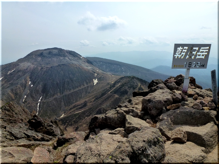 朝日岳に見守られながら歩を進めつつ、