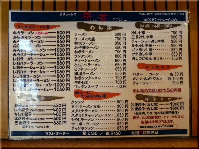 電話 : 0287-64-0444 定休日 : 火(祝営) 駐車場 : 有